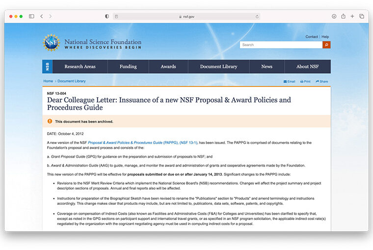 The U.S. National Science Foundation has modified its instructions to grant applicants to recognize that the outputs of scientific research include more than just publications, an idea endorsed by DORA.