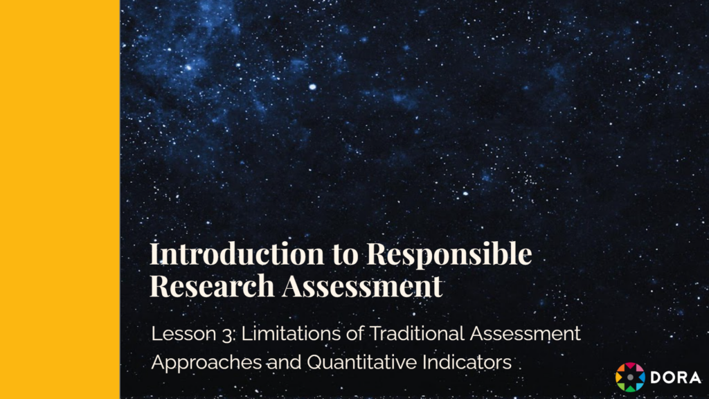 This resource is a part of a set of teaching support materials for DORA’s Introduction to Responsible Research Assessment Course. Find the rest of these resources here.